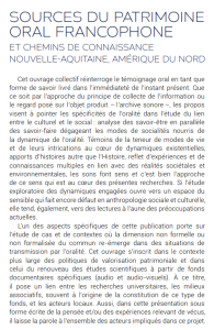 2020, Sources du patrimoine oral francophone et chemin de connaissance, Nouvelle-Aquitaine, Amérique du Nord,  Marlène Belly et André Magord (co-dir.), actes du colloque de Poitiers 2018, Presses universitaires de Nouvelle-Aquitaine. La Geste éditions.
