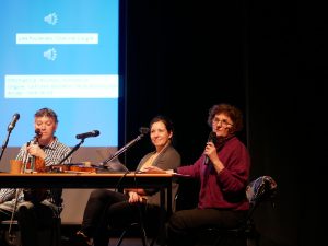 En préambule des colloques organisés à Moncton dans le cadre de l’échange partenarial entre l’Université de Poitiers et l’Université de Moncton, Marlène Belly et Marion Labau ont été quelques jours à Chéticamp, sur l’île de Cap Breton, afin de préparer et présenter une veillée avec la communauté francophone de Chéticamp autour de leur répertoire de chansons traditionnelles francophones. Robert Deveau, fin connaisseur des histoires et chansons de sa communauté, avec lequel le travail avait déjà commencé en amont, les a accueillies et a rassemblé les artistes locaux afin de mettre en parallèle, sur scène et à l’appui d’archives sonores et de propos ethnomusicologiques, les chansons traditionnelles francophones de Chéticamp et du Poitou. cette présentation musicale s’inscrit dans les actions recherche-création de Francoralité : il s’agit de porter le résultat de travaux