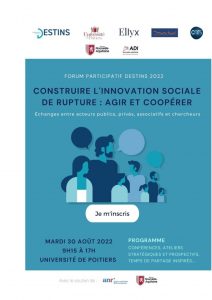 Cette journée aura lieu le mardi 30 août 2022, de 9h15 à 17h à la Faculté des sciences économiques de l’Université de Poitiers et réunira des acteurs socio-économiques engagés dans des démarches d’innovation sociale, des acteurs de la recherche ainsi que des acteurs institutionnels.